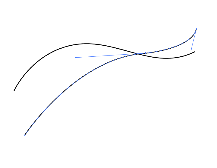 그리고 한 선을 선택한 다음에 다른 선을 클릭하면 이렇게 두 라인이 연결되면서 가운데 부분이 섞인 상태로 나타나게 됩니다.