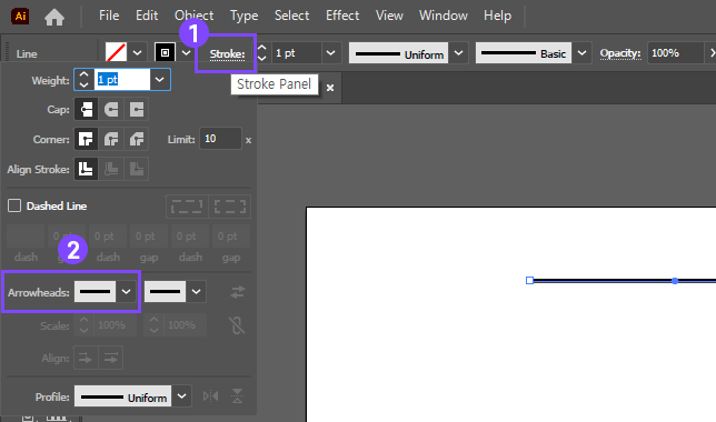 일러스트레이터에서 선 모양을 화살표로 어떻게 만들까요?