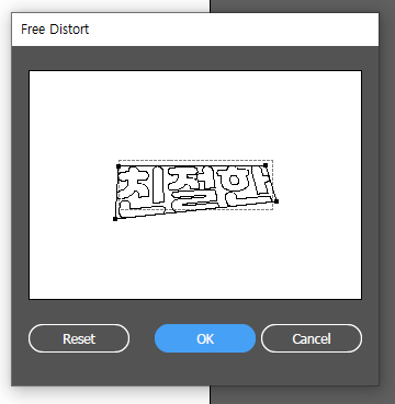 입력한 텍스트에서 free transform 기능을 활용해 꼭지점을 움직여서 투시를 변경해보겠습니다.