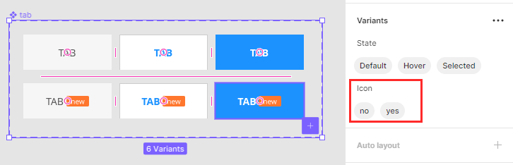 Variants에서는 속성을 더 추가해서 실제로 사용할 때 편리하도록 쉽게 정리할 수 있어요.