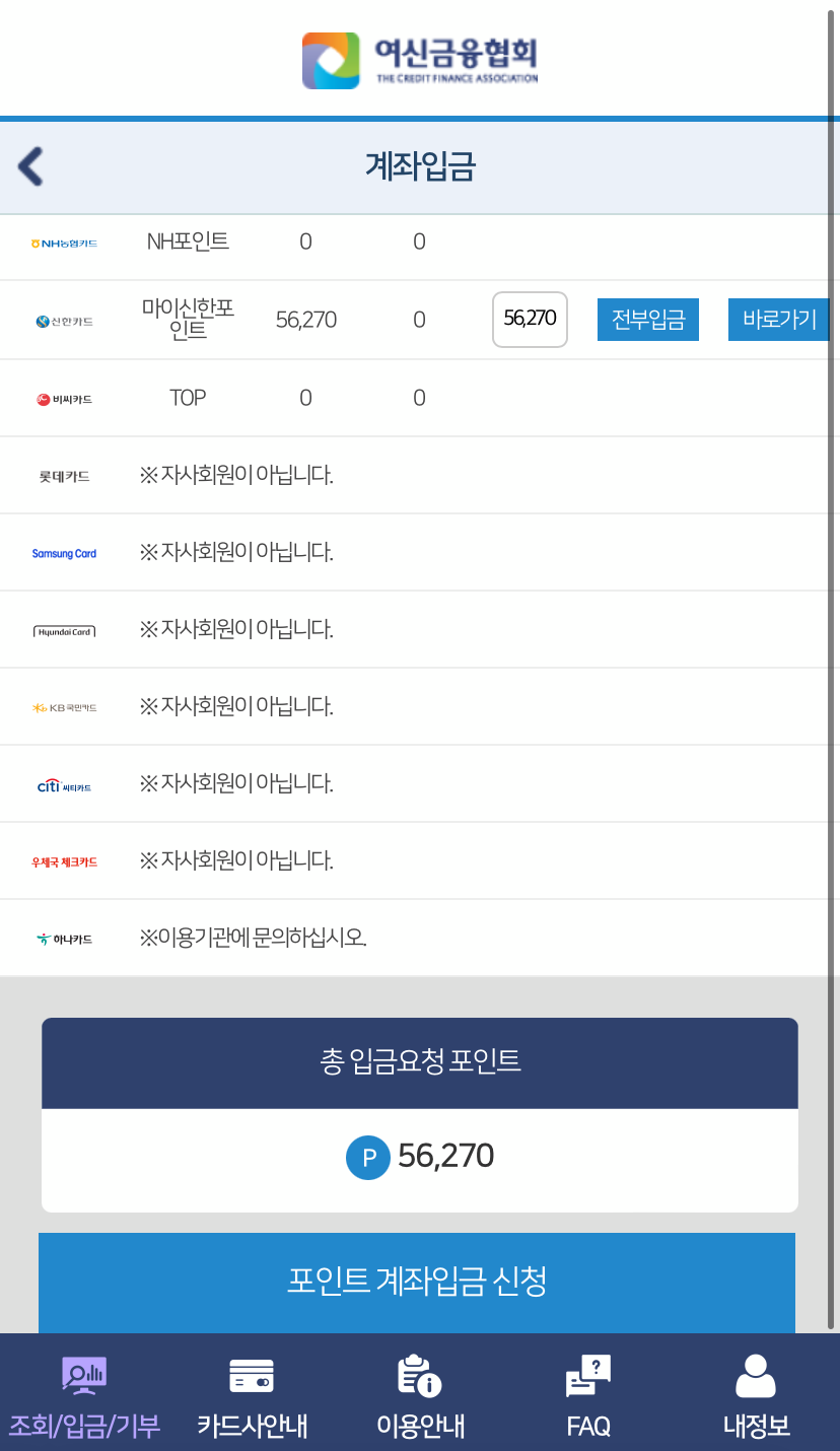 여신금융협회 카드 포인트 통합조회 사이트