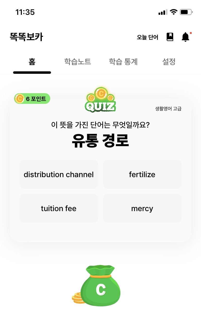 포인트 쌓고 기프티콘 바꾸는 영어 공부 퀴즈앱 똑똑보카