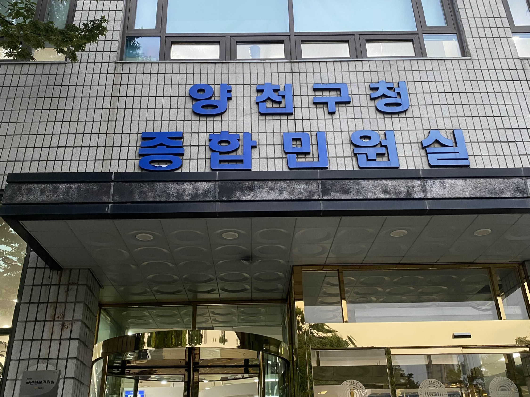 퇴근후 양천구청으로 왔습니다. 종합 민원실이라고 적힌 이 건물로 들어가시면 돼요.