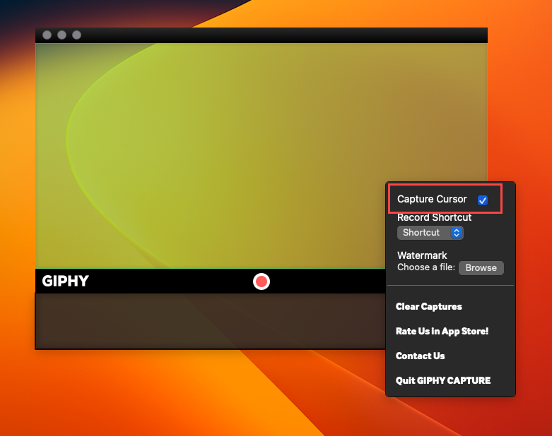 이렇게 Giphy Capture가 화면 기록하는걸 허용해주셔야 하는데요, 만약 팝업을 지나쳤다면
