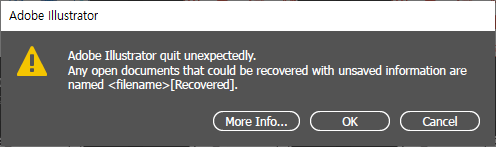 일러스트레이터가 비정상적으로 종료되면 다시 켰을 때 이렇게 리커버리 파일을 불러옵니다.
