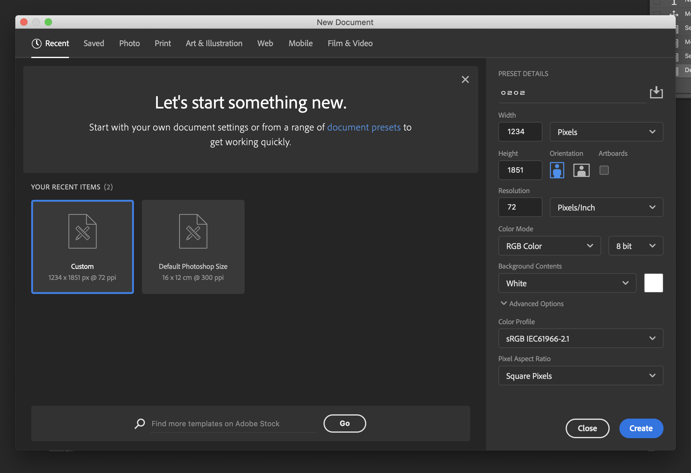 오늘은 포토샵 2020 버전이 깔린 맥북 환경에서 작업을 하던 도중 새파일을 열 수 없는 문제를 발견했어요. 처음에 아무 작업이 없는 상태에서 새 파일을 여는 것은 가능한데, 작업을 하다가 다른 창에 새 파일을 열고 싶을 때가 있잖아요.