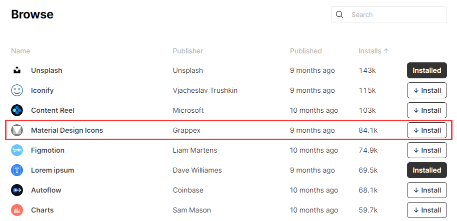[피그마] 구글 Material Design Icons 플러그인으로 기본 아이콘 쉽게 삽입하기