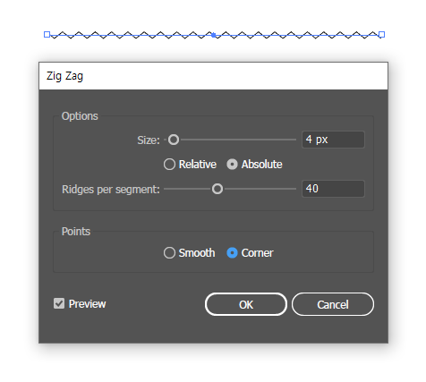 Preview를 눌러서 보시면서 Size와 Ridges per segment를 조절하세요.