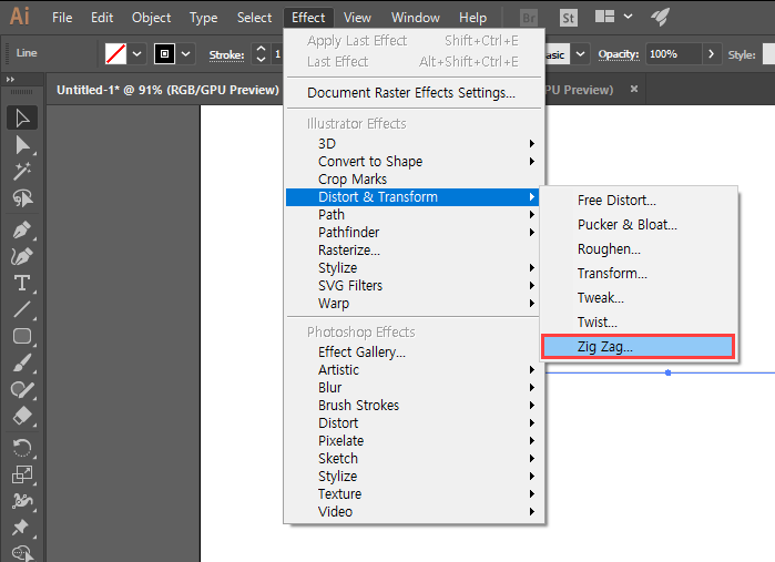 Effect - Distort & Transform - Zig Zag에 들어갑니다.