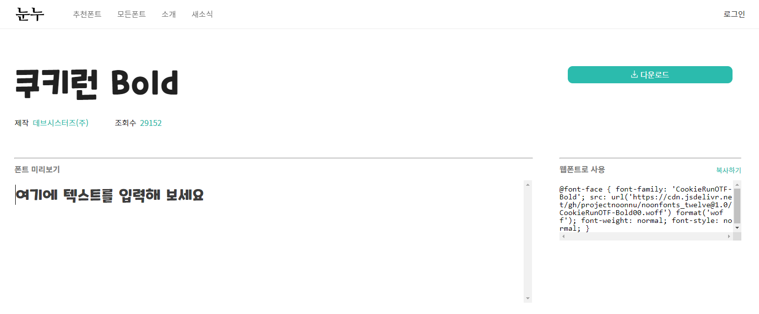 여러분도 눈누 사이트 들어가셔서 둘러보시고 취향에 맞는 폰트를 만나실 수 있으면 좋겠네요.