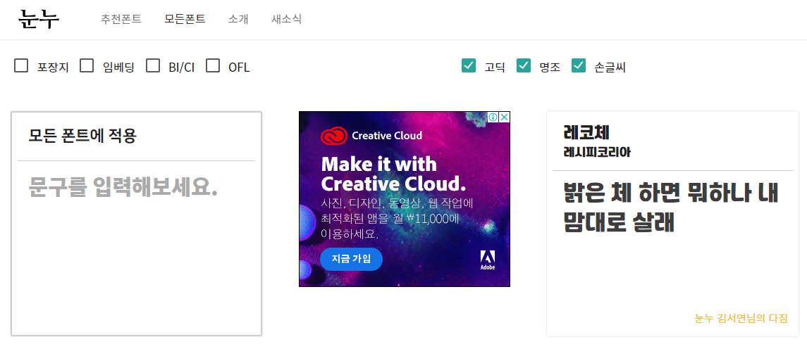 상업적으로 이용할 수 있는 무료 한글 폰트를 모아 놓은 사이트 눈누