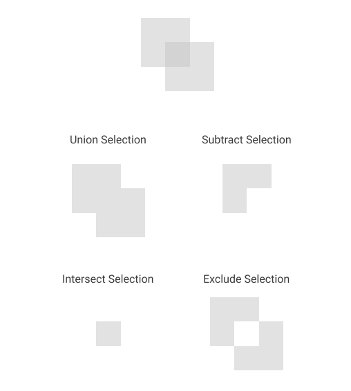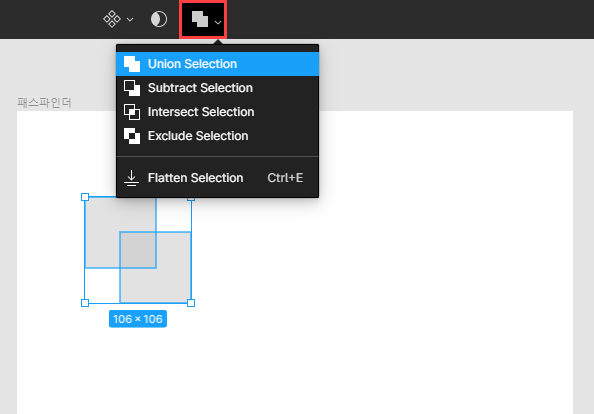 간단히 드랍다운 되는 옵션에 대해 설명하면 Union Selction은 두 도형을 합쳐서 하나로 만들어주고, Subtract는 앞에 있는 도형을 기준으로 겹친 부분을 삭제합니다. Intersect는 두 도형이 겹친 부분을 제외한 나머지 부분만 삭제하는 옵션입니다.