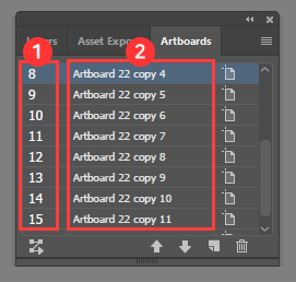 2번에 나와있는 아트보드 이름에 적힌 넘버는 출력할 때 순서랑 아무 관계가 없어요.