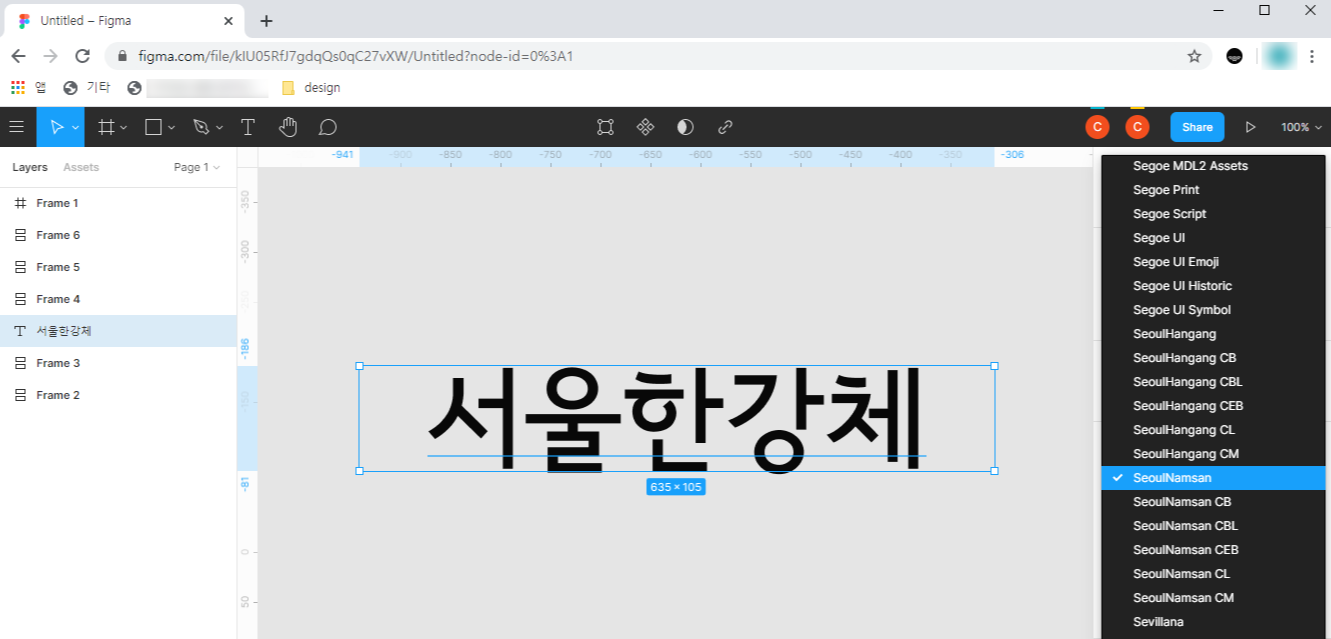 먼저 로컬폰트를 쓰는 가장 간단한 방법은 피그마 데스크탑용 앱을 쓰는거예요. 별도의 세팅이 없어도 로컬 폰트가 알아서 사용할 수 있도록 활성화 됩니다.